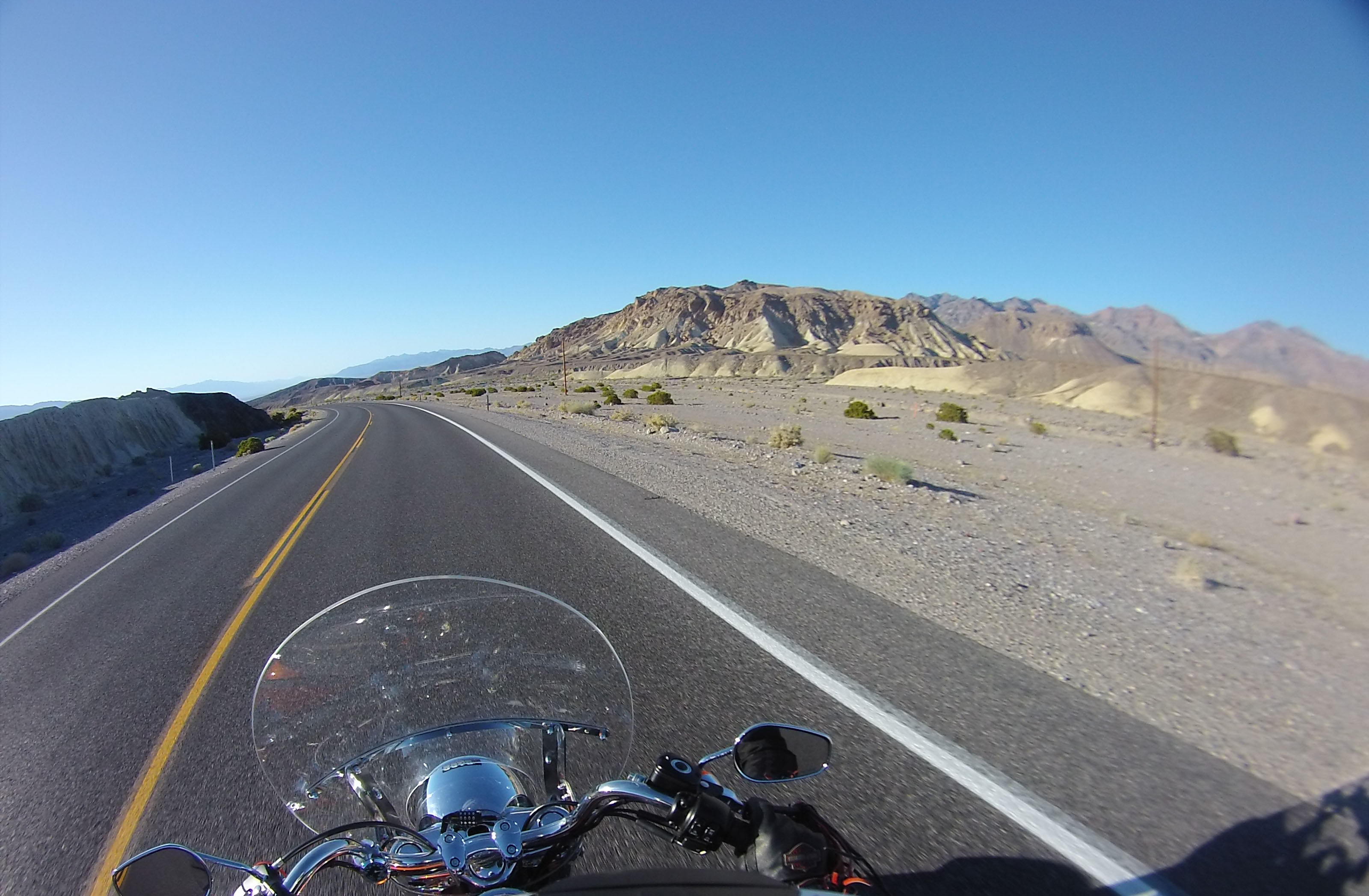 Day 2Thursday, March 26, 2015I had planned a much easier ride for Day 2, and leaving New River at about eleven o'clock in the morning provided plenty of time for a leisurely ride to Kingman, AZ, my destination for the next evening. The gravel roads and the steep downhill section from Jack's house back to the Roadrunner were a bit daunting, but the Switchback and I managed to navigate them without incident. My route took me north on I-17 from New River to Arizona Route 69, which I followed north to Prescott Valley. Then via Arizona Route 89A north through Jerome, Cottonwood, and Sedona back to Interstate 40 near Flagstaff. The planned route was about 280 miles, according to Google Maps a five hour drive. A slight error near Prescott Valley resulted in a missed turn and diversion into Prescott itself, but knowing the direction I wanted to go, the problem was rapidly corrected. Meanwhile, I had noticed that one of the LED road lights that I had installed on the front of my Switchback had gone dead. In Prescott I found a Home Depot store where I could purchase a few items including an inexpensive VOM meter that would, hopefully, let me diagnose and correct the problem. The VOM indicated that the lamp was still receiving voltage, so the problem was likely a defect in the lamp and not some problem in the circuit. There were two main reasons for taking the rather indirect route to Kingman through Jerome and approaching Flagstaff. One was to ride through Jerome, a historic and scenic mining town, perched on a hillside, through which I had ridden a few years earlier on my BMW K1800LT enroute from Santa Fe to Southern California for a business meeting. I hoped to get some photographs of Jerome. Unfortunately, the terrain is not especially conducive to photography from the streets and highways. Likely the best shots of Jerome, in its steep hillside location, are obtained from airplanes. Nonetheless, it is a fun ride, especially the winding mountain roadway of 89A approaching Jerome from the south. The other reason was to visit Grand Canyon Harley-Davidson in Bellemont, AZ, west of Flagstaff on I-40, where they usually have a good collection of long-sleeved Harley T-shirts, although I didn't find one I liked on this visit. Pulling into Kingman about seven o'clock in the evening, I rode around a bit looking for an interesting place to stay for the night, then settled on the Travelodge Motel on Andy Devine Boulevard near the Interstate, where I had stayed on many previous occasions. Once connected to the WiFi at the Travelodge, I looked up superbrightleds.com on my browser and ordered a replacement for the defective LED road lamp to be shipped to my daughter's address in California for arrival the next Monday. Denny's restaurant next door to the motel provided a good meal for the evening and great entertainment watching the local characters who came there to eat, an experience that prompted me to comment on my Facebook page that Denny's is the "Walmart of restaurants."Day 3Friday, March 27, 2015Wary of the possibility of late-March snowstorms, I had planned to follow a southern route, even thought my eventual destination was the Sacramento area in Northern California. The weather in the high country around Flagstaff, Arizona, had cooperated with no snow on the roads and a high temperature in the low sixties for a comfortable ride. My next destination after Kingman was Death Valley. I had planned ahead a few months earlier and booked a room for Friday and Saturday nights at the Furnace Creek Ranch resort there. En route, I could follow some interesting roads and, for the most part, stay off the interstate highways. Early Friday morning I walked across Andy Devine Boulevard to the McDonald's restaurant for my favorite McBreakfast, a Sausage Biscuit with Egg. I then packed up the bike and set out toward the highway. My first stop, however, was Mother Road Harley-Davidson, just a mile from the Travelodge down the I-40 access road, where I again browsed for interesting T-shirts, and again with no luck finding one I liked. I'm pretty picky about designs, since I already have quite a large collection. I'm partial to shirts with wolves on them. They used to be easy to find, but more recently Harley-Davidson seems to favor other designs. I don't like skulls; perhaps I'm overly superstitious about those. And girly designs would get me into trouble with my wife, I think. Eagles and bike stuff are OK. I'm not very fond of cartoons. The Mother Road and Grand Canyon Harley-Davidson dealer designs on the back are usually interesting. It's a short hop west on I-40 from Kingman, about five miles, to the exit for Shinarump Drive. Once off the interstate, an almost immediate right turn put me on the Oatman Highway, one of the few remaining extended sections of original Route 66 from the 1920's. I had ridden the Oatman Highway once before on a motorcycle and driven it once hauling a rather large motorcycle trailer with my previous SUV, a 2002 GMC Envoy. On both those trips, I had taken few photographs. It's a slow, winding, two-lane road over the Sitgreaves Pass through the Black Mountains, with interesting scenery, many switchbacks, and deep drop-offs adjacent to the roadway with few guardrails. The first ten miles after the turn from Shinarump Drive is a straight desert highway. Just before the road entered the mountains, I stopped to install my Action Pro video cam on top of my Nolan helmet and tested the camera to be sure videos were recording properly so that this time I could record the twelve mile trip over the pass to Oatman via the old highway for posterity. Readers can link to the video here on YouTube, or alternatively here on Facebook. (For best video, click the HD selection if you have a fast internet connection.) |