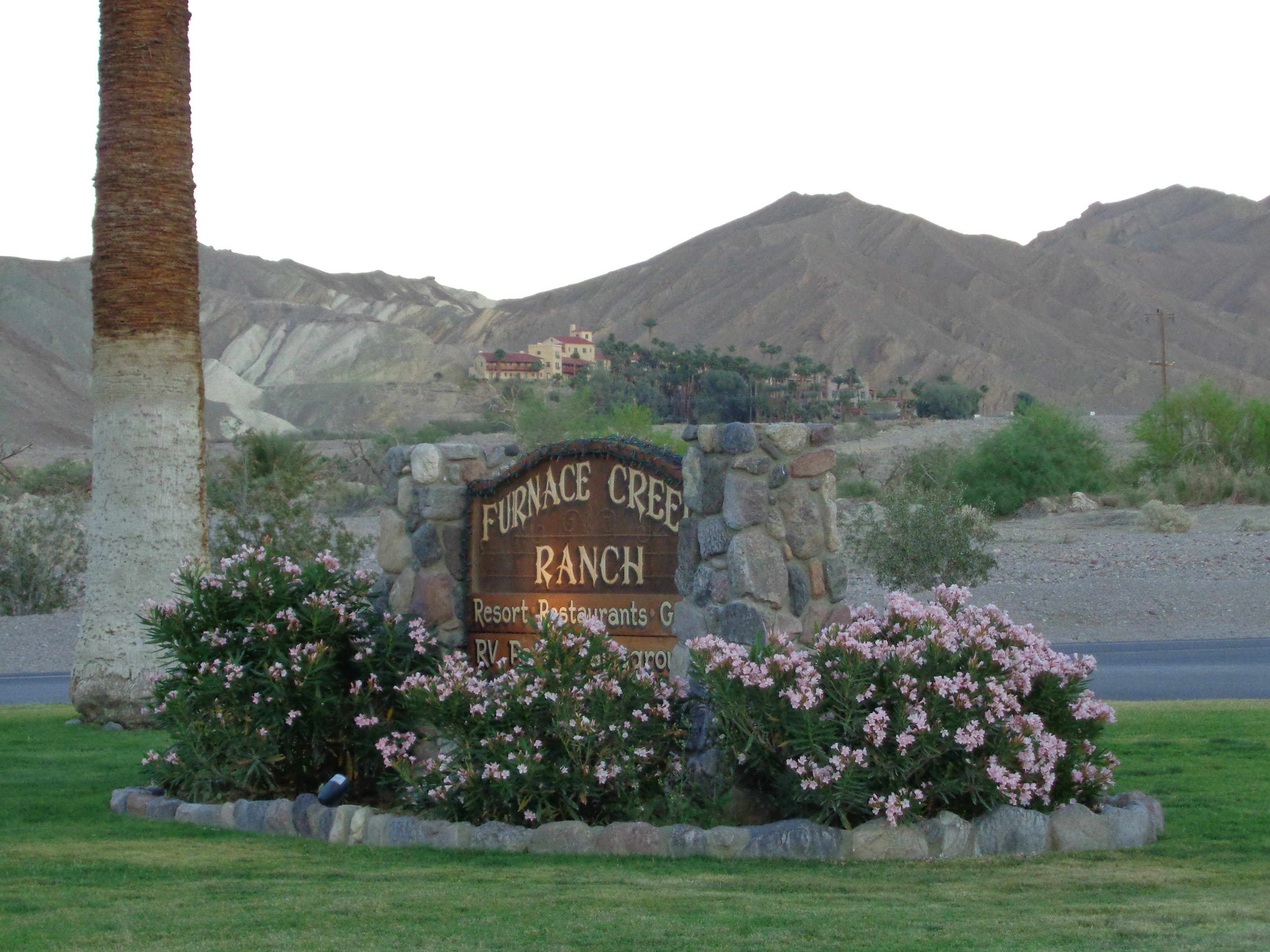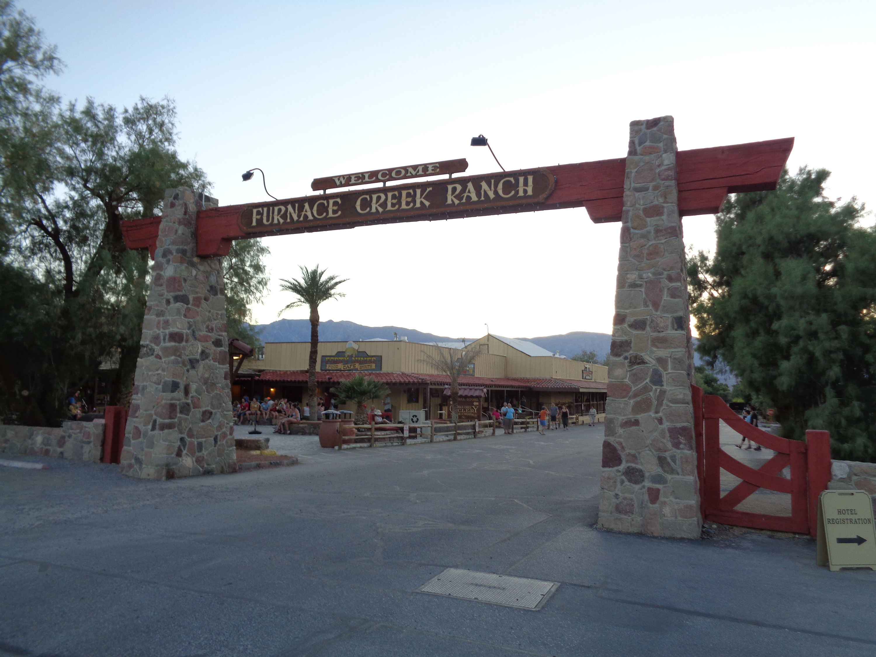 Entrance and restaurant/shop plaza at Furnace Creek Ranch |
