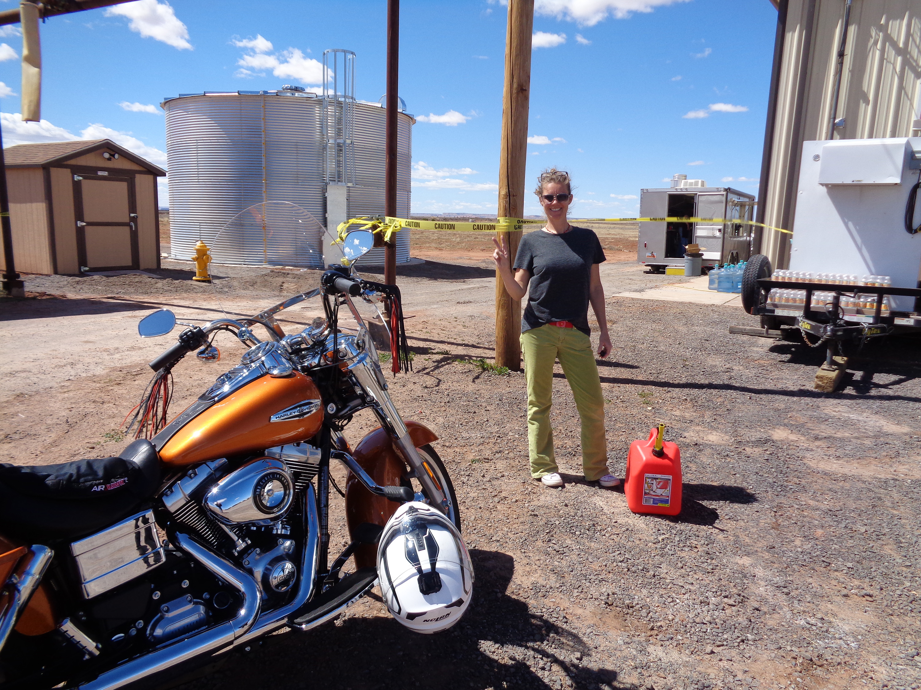 such poor quality that my dyno-tuned Harley engine didn't like it. I resolved never to let the tank get so low again. For the rest of my trip I resigned myself to more fueling stops, filling up at every opportunity