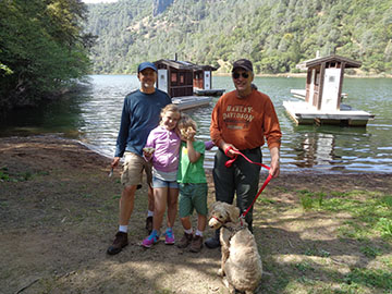 Days 6 - 12Monday, March 29, through Sunday, April 5, 2015Parked my bike in the garage and spent the week with my two grandchildren, Eva, 9, and Leo, 6. This was their week off from school for spring break. Their parents had to work most days, so I was the sitter, chauffeuring the kids, picking them up from nature camp by the American River. One car, the Toyota minivan, was available for my use, since my son-in-law Boris rides either a bicycle or his 1991 Honda ST1300 about 12 miles to work each day. My daughter was off work for a couple of days at the end of the week. We went to Auburn for lunch and a hike along the American River, and on another day we went to downtown Sacramento and toured the California State Capitol building. On Saturday, Boris joined us for another hike in an area off Foresthill Road east of Auburn where we hiked a mile or more downhill on a trail to Lake Clementine, on the American River, then back up. Good exercise. This week also gave me a chance to meet Daisy, their five-month-old Golden Doodle puppy, now a formidable 40 lbs. and still growing. Daisy is lively, but a sweetheart. I love dogs. |