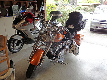 Day 16Thursday, April 9, 2015First thing in the morning, I used Skype on my computer to place a digital call to the Harley-Davidson HOG Club roadside assistance line. The lady who answered the phone took all my information, then put me on hold for a few minutes, and when reconnected told me she had located a tow company that would send a truck to pick me up with my bike, scheduled arrival time abut 10AM. The nearest Harley-Davidson dealer was Duke City Harley-Davidson in Albuquerque, about 75 miles away. There was likely no shop that could sell or mount an appropriate tire on my Harley-Davidson any closer than that. The agent on the telephone, who happened to work for Road America, the contractor HOG uses to arrange roadside assistance, told me the insurance included in my HOG membership would cover $100, but the estimated towing charge was $430, so I would be responsible for $330. I winced, but consented. What choice did I have? With about an hour and a half until scheduled arrival of my tow, I took a quick shower, packed up all my bags, then walked down the main street to look for a place for breakfast. I had seen a restaurant adjacent to the motel the night before, but it was closed. A couple blocks further, past the saloon where I had eaten the night before, I saw a sign with an arrow pointing down a little side street that advertised a restaurant with breakfast, lunch, and dinner. About a half block off the main street, I found this nice little cafe, the Magdalena Cafe at 109 Main St, possibly the only working restaurant in Magdalena, sat down in a booth and ordered breakfast. There was only one other patron in the place, in the booth next to mine, and he moved around the table to position himself for conversation. He was an avid talker, and began telling me tales of his life, having, he said, been born and grown up in Southern California, but recently returned to New Mexico where his ancestors had been ranchers in the Magdalena area. He said he had inherited a large ranch, but there was a problem with unpaid taxes. Then he began telling stories about the wild west, and outlaws, and such, much of which I suspected may have been fabricated. About the time I finished eating my breakfast, the manager of the motel showed up to tell me the tow driver had arrived with his truck. He was about half an hour earlier than I had been told to expect him. The motel manager and his wife gave me a ride back to the motel. They apparently had had no problem finding me. There was only one place in town I could possibly go for breakfast. Back at the motel, John, the tow driver from AMJ Towing in Socorro, NM, told me he had another job, but had cut that short and dropped the vehicle in Socorro, realizing he could pick me up with my bike, then retrieve that car that he had to tow to Los Lunas, and kill two birds with one stone. John was extremely competent, helped me load the bike on the flatbed truck and tied it down securely, then drove me to Duke City Harley, picking up and dropping off the other vehicle along the way. We had a lively conversation in his truck as we made the trip. I had called ahead to Duke City Harley-Davidson to make sure they had a tire to fit the rear of my bike. But after arriving around noontime, the service manager discovered that their inventory record on the computer was in error. Fortunately they were able to obtain a tire from their sister dealership, Thunderbird Harley-Davidson, across town but still in Albuquerque. Inspection of the flat tire after removal revealed that it had suffered a puncture in the middle of the tread that I had not found the night before. Unlike most instances, whatever sharp object had punctured the tire on the road to Magdalena had completely departed, and thus the tire had lost pressure almost immediately rather than still holding air and losing pressure slowly. Consequently, as I rode on the flat into Magdalena, the shoulder of the tire had been completely destroyed and had developed multiple leaks. In fact, I had noticed a distinct smell of burning rubber as I approached the town. So this scenario made sense. I cooled my heels, shopping for T-shirts, arranging my photos and videos on my computer, and finally about 4:30PM my bike was ready with a new rear tire, at a cost of another $300 dollars or so. Altogether, with the motel, the tow, the tire, and labor for mounting, this adventure had cost me about $700. I rode home to Santa Fe at last, arriving about 7PM, in time for Eileen to cook me that special dinner she had been saving from the previous evening. It was good to be home.The End |