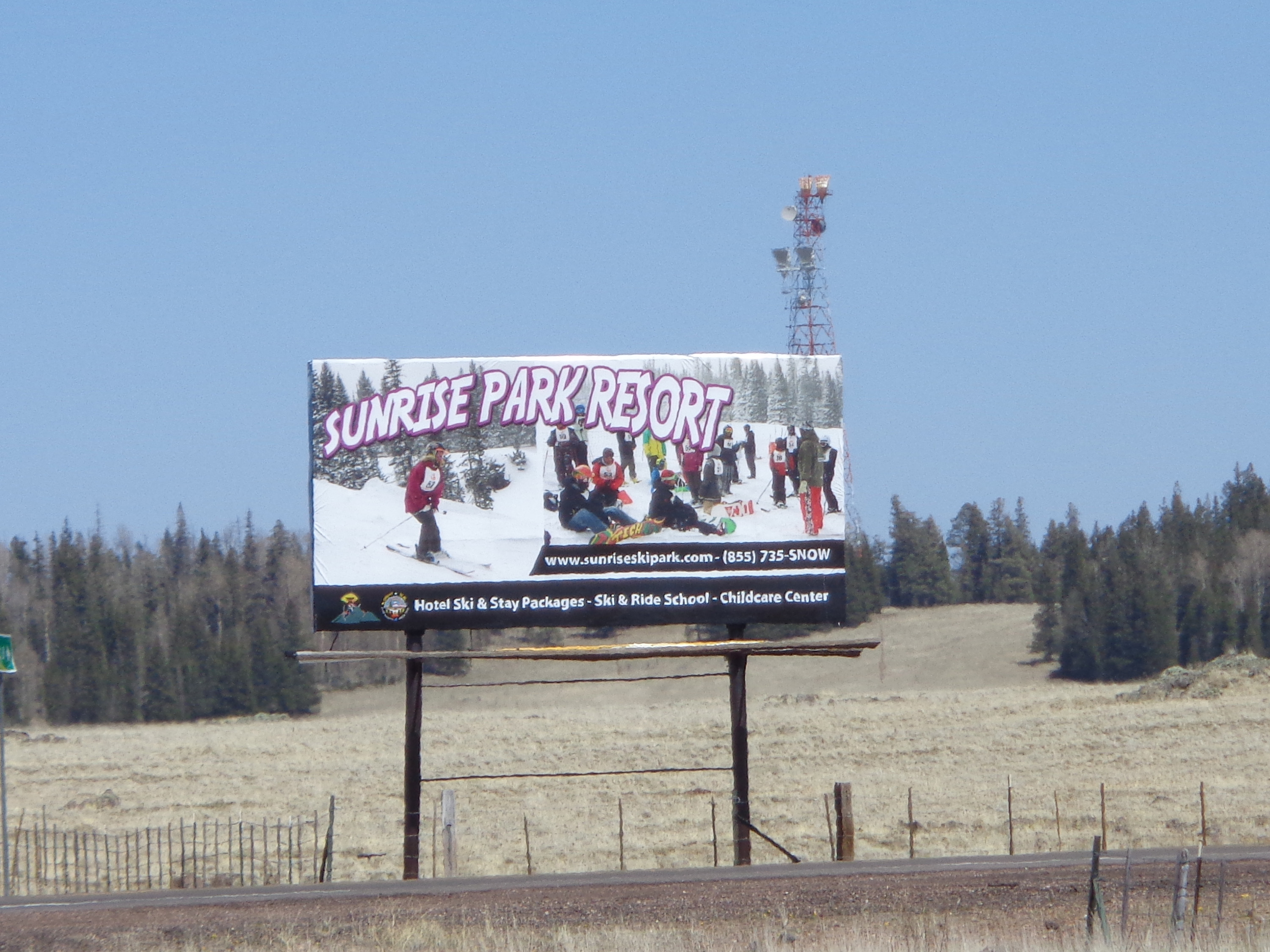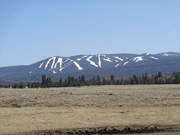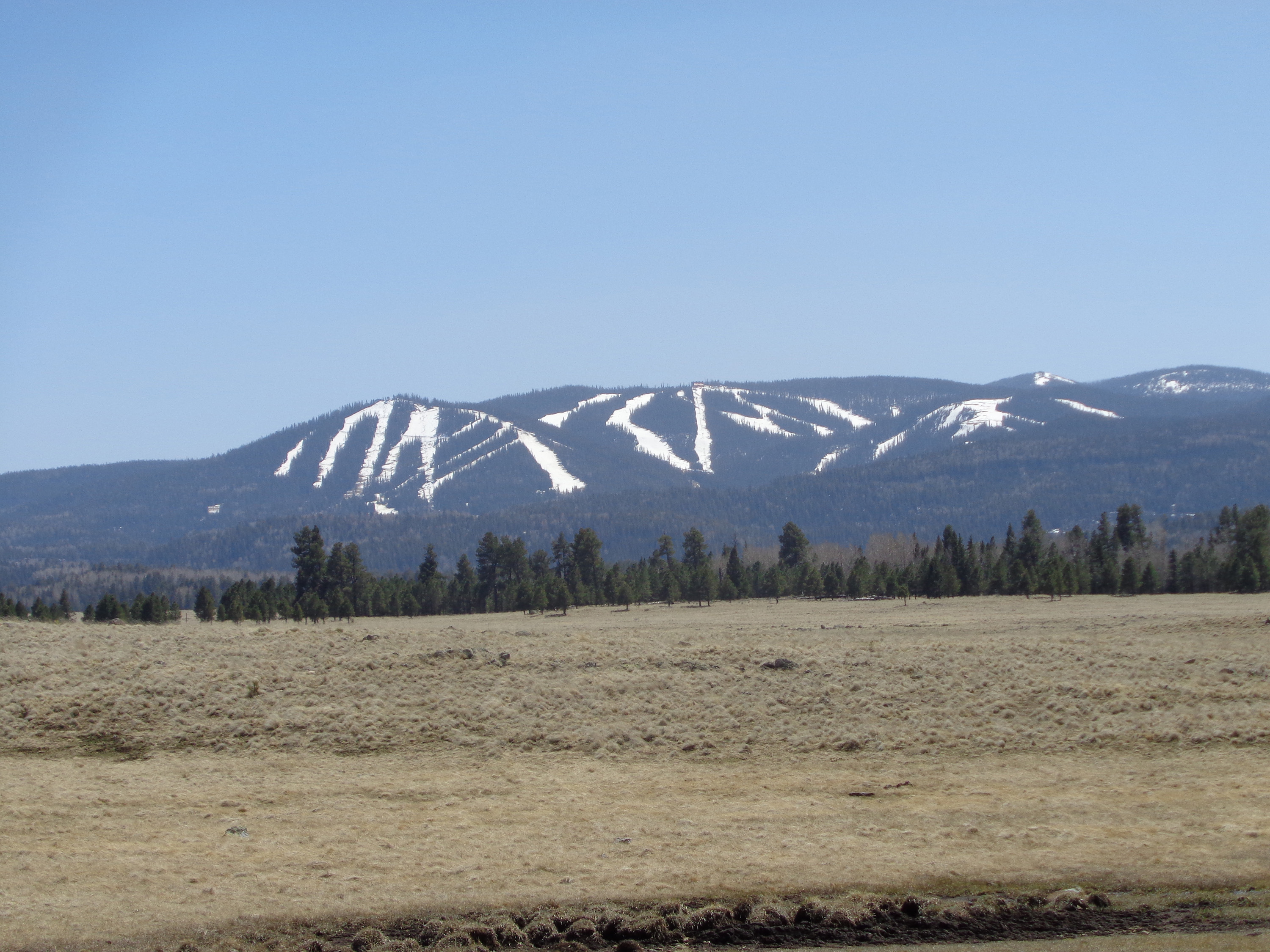 | After that I rode north, taking the AZ 73 cutoff through White River, still on the Apache reservation, and then AZ 260 east to Eagar and Springerville where it reconnects with US 60 for the ride into New Mexico. Most of this route, especially on AZ 260, is beautiful woodland, then the road opens up into broad meadows and panoramic vistas on the descent into Eager. The Sunrise Park ski area is prominently visible in the right after leaving the forest. I fueled the bike in Eagar before heading east on US 60 into New Mexico. | ||