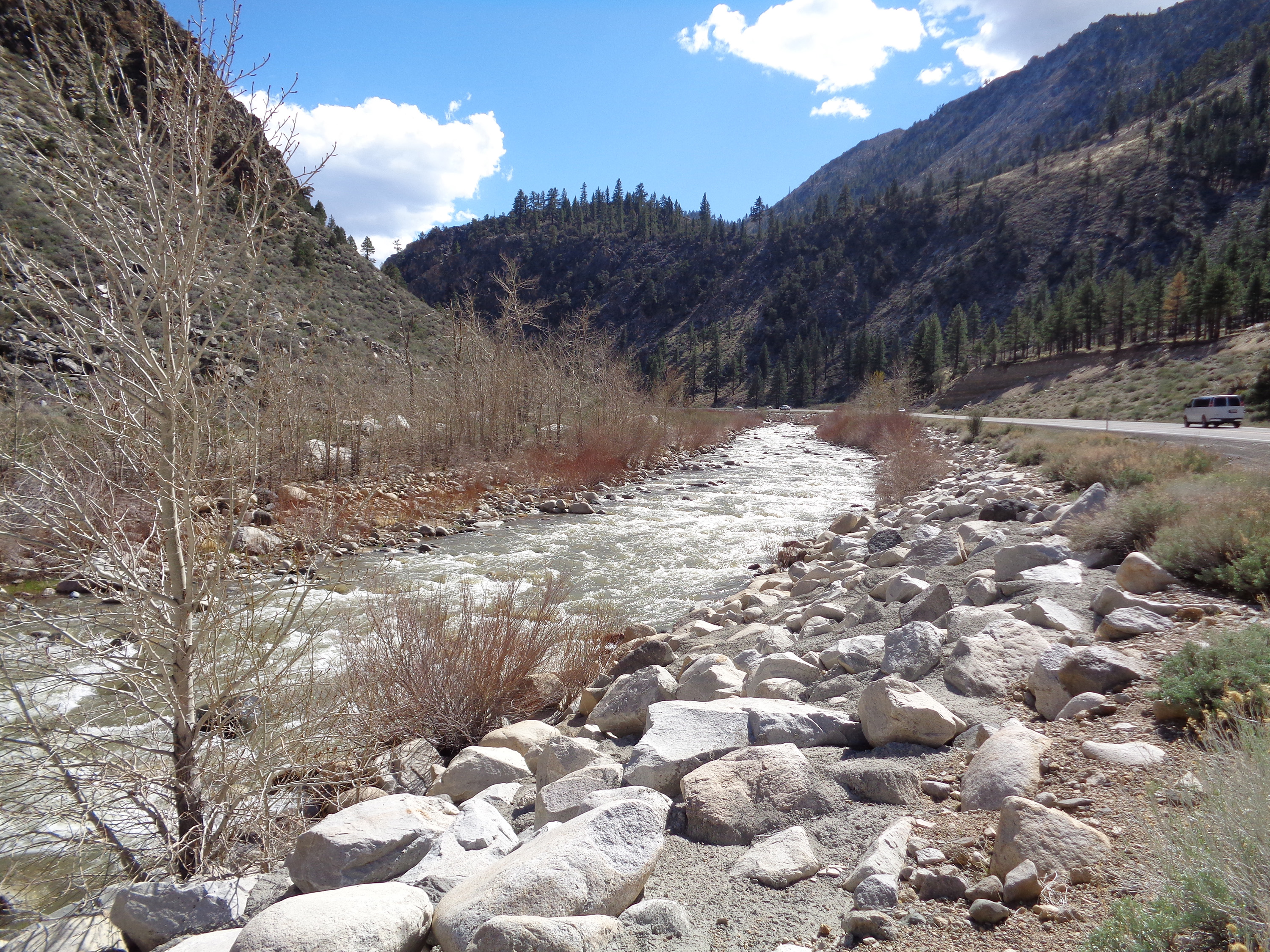 | The ride up US 395 is very scenic. This time of year, most of the passes through the Sierra Nevada to California's central valley are normally still closed to traffic due to residual snow. The Monitor Pass and other passes near Lake Tahoe, however, were open. I stopped at the overlook on the upgrade just north of Mono Lake for photographs, then stopped in the town of Bridgeport for gas. An especially pretty section of US 395 is the stretch from Walker to Topaz, where the road follows the West Walker River, a babbling stream flowing through a deep valley in many spots. California Highway 89 over Monitor Pass is a great motorcycle road with twisty sections alternating with occasional fast straightaways. Ominous clouds to the south seemed to be threatening rain as I road through the pass, but nary a drop was felt. | ||