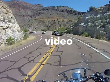 Day 14Tuesday, April 7, 2015My plan for this day was to ride to Phoenix, Arizona, then drop in on some other former high-school friends from Northville, Jim Wharton and his wife Carol (née Simon). I didn't know how long it would take, and didn't know for sure if I would find them at home, not having alerted them to my intentions. But surprising old friends is half the fun of riding around America. From Victorville I avoided the hectic traffic on the interstates, I-15 and I-10 through San Bernardino, Palm Springs, and Palm Desert, instead following the two-lanes east. Bear Valley Road east to CA 18, then CA 247 to Yucca Valley, and CA 62 through Twenty-Nine Palms across the Mojave Desert and crossing the Colorado River and into Arizona at Parker. It's a peaceful ride, beautiful desert scenery, and virtually zero traffic. From Parker, I rode AZ 95 and the 72, opting to turn south on the connector near US 60 and follow I-10 the rest of the way into Phoenix in order to arrive there on a reasonable schedule in late afternoon. I fought Phoenix rush-hour traffic for a while, but managed to show up on my friends' doorstep in Queen Creek, on the southeast side of Phoenix, about 5PM. Fortunately they were at home. Jim was surprised when he came to the door, but recognized me immediately. We sat and had a beer, talked, and reminisced for a couple of hours. Carol is an artist. Jim is a former GM marketing executive turned author, now having written and self-published several novels in the science fiction genre. I managed to read one of them, The Destiny Project, on my Kindle for Macintosh before arriving for my visit. Demurring on an invitation from Carol and Jim to spend the night at their place, I left just about dusk to ride to Apache Junction where I found accomodations at the Best Western Inn for the night. I wanted to get an early start the next morning in order to arrive back home in Santa Fe by dinnertime, and I thought staying the night in Apache Juction would allow me to avoid the rush-hour traffic in the morning, which it did. The Best Western was virtually deserted. Off season compared to spring-training time according to the desk clerk. He gave me a room right next to the lobby and suggested I leave my motorcycle parked by a rail fence in the check-in area just opposite the lobby where the staff would keep and eye on it all night. Apache Junction is a very dark place at night. I walked across the road from my hotel and found Cobb's Restaurant & Lounge, a little family restaurant with a bar and a lot of characters dining there. Again, I ordered the New York cut steak. In this case it was a very thin steak, served with mashed potatoes, gravy, and vegetables. Delicious, and reasonably dietetic, which at this point in my journey was to be desired since I had probably already gained my typical five pounds or more from eating out while traveling. Walking a bit after dinner, I found several other small bars and restaurants that looked interesting in that neighborhood on the east end of Apache Junction. They were all very dark and unassuming, however. No bright lights or signs to draw much attention, although likely familiar to locals.Day 15Wednesday, April 8, 2015Up early in the morning, I rode from Apache Junction east on US 60 about 50 miles to Globe, Arizona, a mining town, where I stopped at McDonald's for my favorite breakfast. I then headed north, again on US 60, toward the Fort Apache indian reservation. This is a fantastic scenic two-lane, and one of my favorite rides, especially the area spanning the Salt River Canyon, a deep gorge with switchbacks down the rim to the bridge across the river. I mounted my Action Pro camera on my helmet before leaving McDonald's, and shot video while riding through the canyon. |