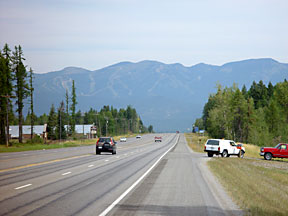 | For all its popularity, I was not impressed with Kalispell. The town itself is basically a strip with a bunch of casinos and a few motels. In the morning, however, I first rode north to Whitefish, a town with a charming business district and a world-class ski mountain.