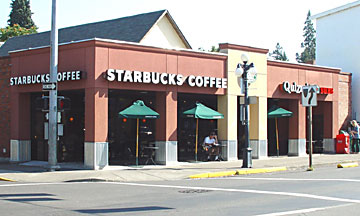 Morning in Eugene. For breakfast I sought out the big Starbucks on 13th Street where I had stopped for afternoon coffee a year earlier.
