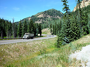 The scenery changes dramatically from the desert views along US 6/191 to the forested canyons of Utah 31. After several days of Nevada and Utah desert riding, this change was welcome. A major component of the traffic on highway 31 is large ore trucks. These are likely carrying coal from mines along the highway to a large coal-fired power plant about eight miles west of Huntington.