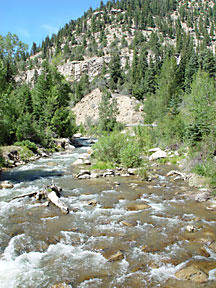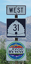 The babbling whitewater stream along the road gives way to earthen dams and reservoirs at the northwestern end of highway 31. Both appear to afford ample opportunities for fishing.